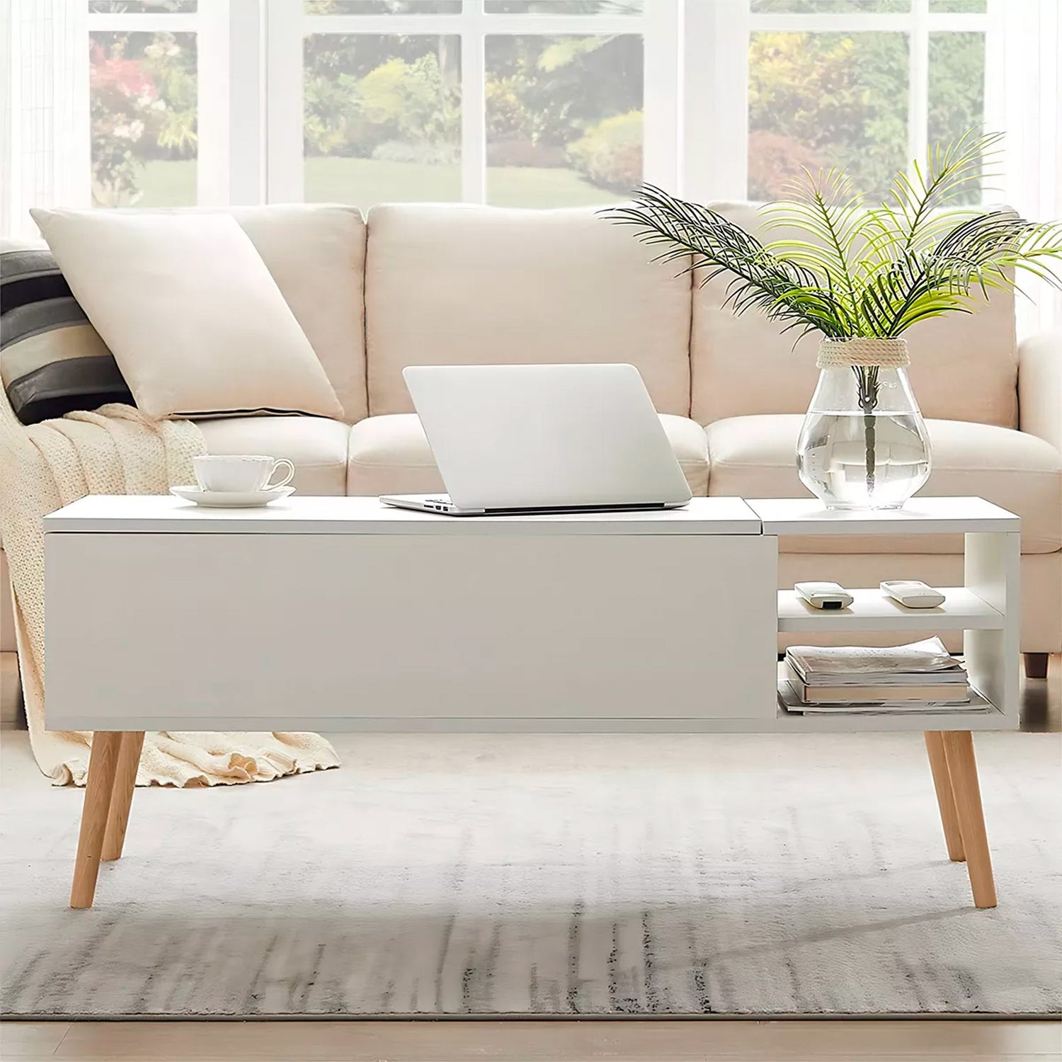 La mesa de centro elevable Nyana Home es la solución perfecta para combinar estilo y funcionalidad en tu salón. Su diseño escandinavo en blanco y madera aporta un toque moderno y elegante que se adapta a cualquier decoración.