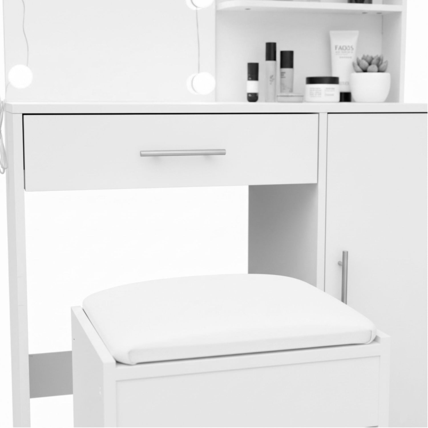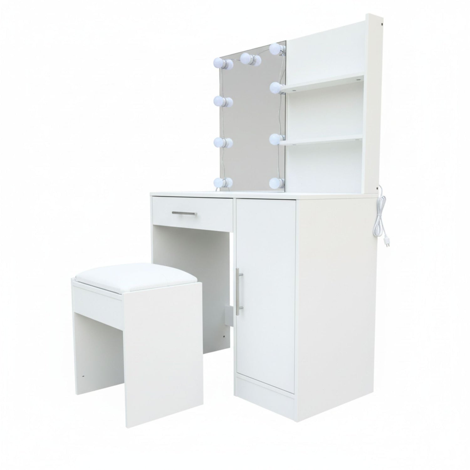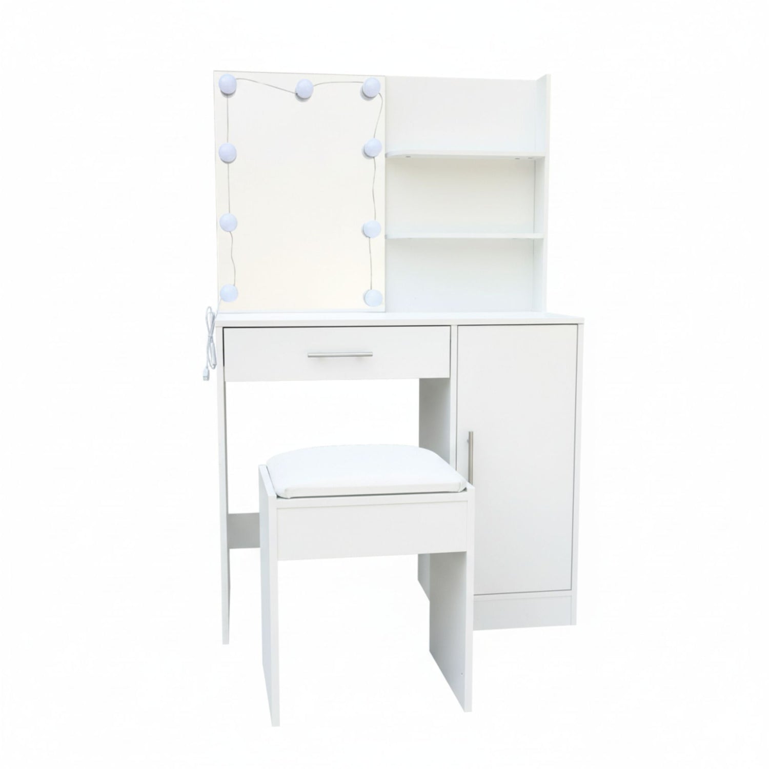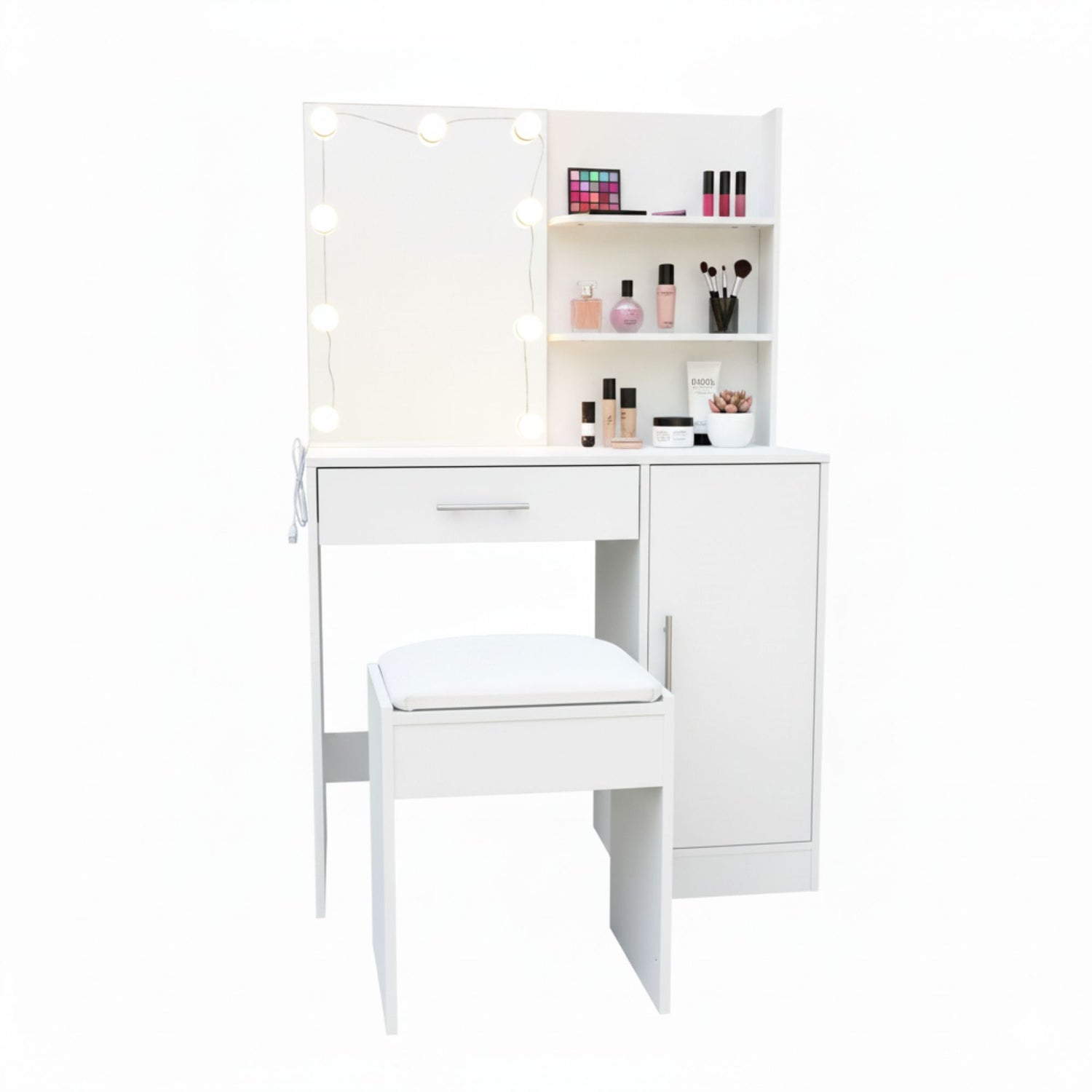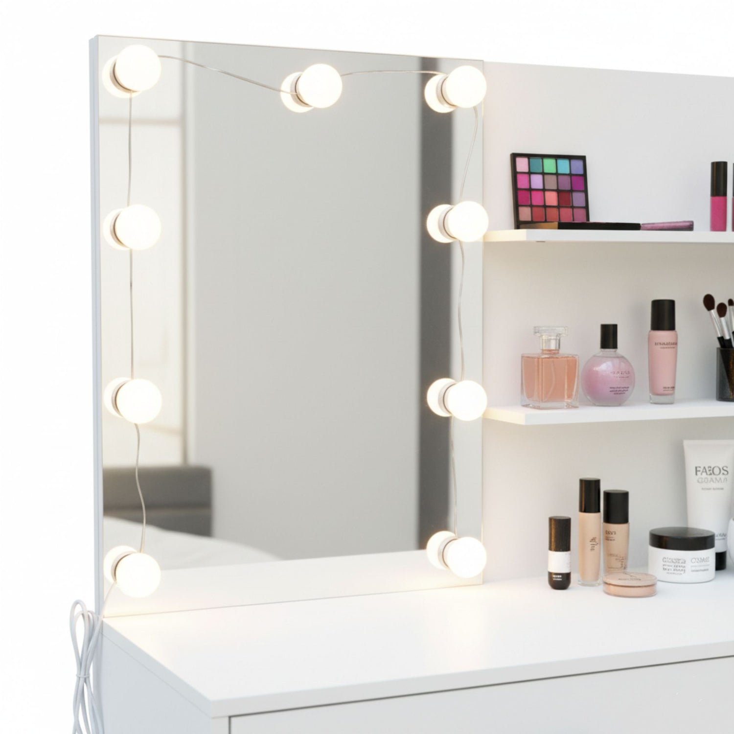 Si buscas un espacio ordenado, bonito y con luz ideal para maquillarte, este tocador lo tiene todo. Desde su espejo con bombillas LED hasta su cómoda encimera ampliada para tener todo a mano, ¡es un auténtico aliado para tus rutinas! Gracias a sus 3 modos de iluminación ajustable (luz cálida, neutra y blanca), podrás adaptar el ambiente a cada momento del día.