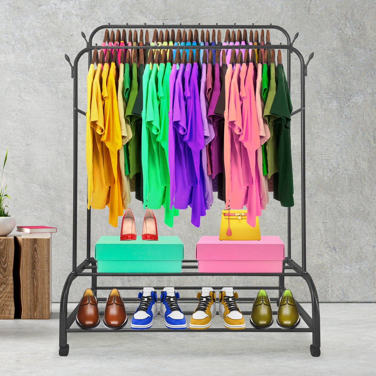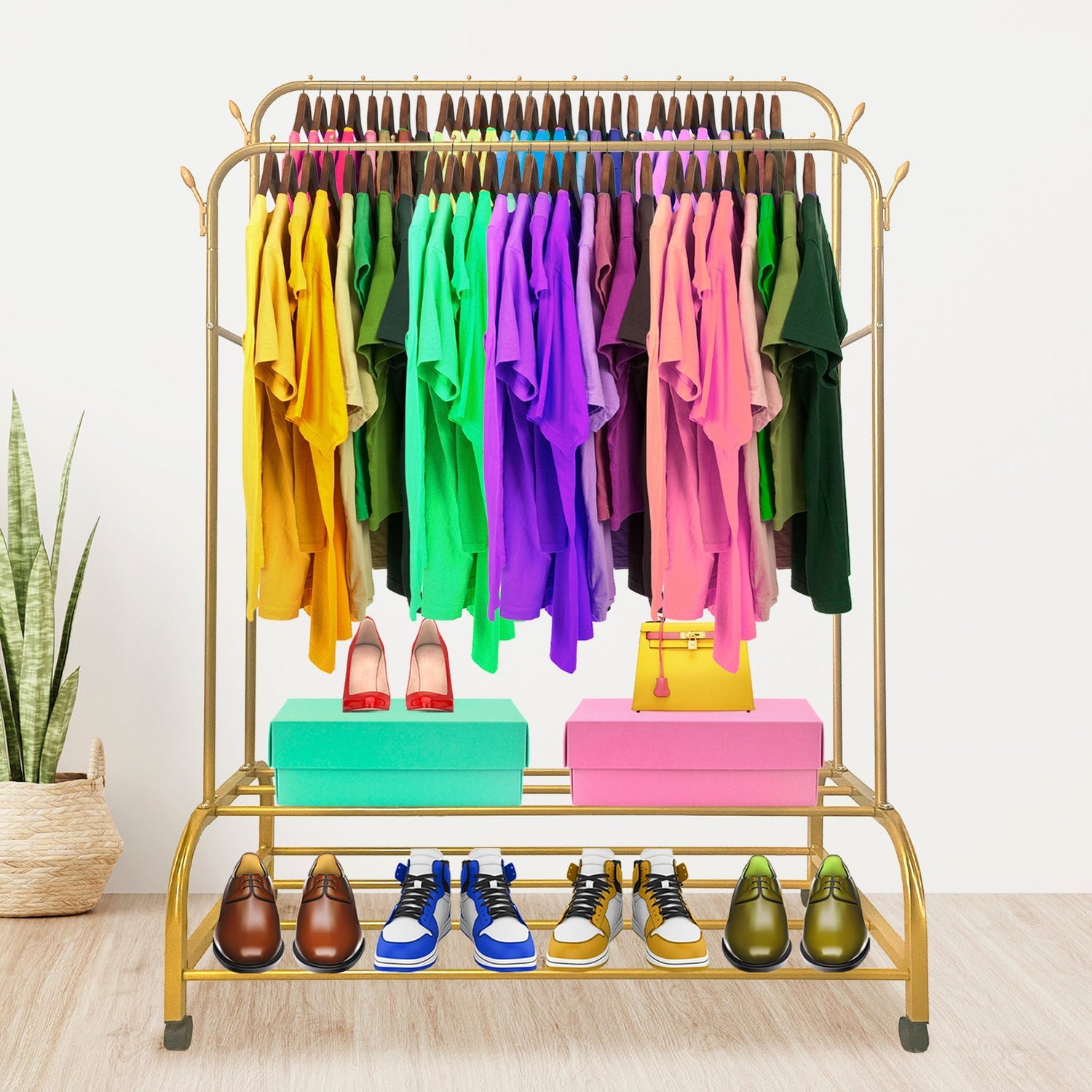 Fabricado en acero de alta calidad, este perchero es resistente y duradero, asegurando una larga vida útil. Su diseño robusto puede soportar el peso de varias prendas sin problemas, brindándote la tranquilidad de que tus ropas estarán seguras.