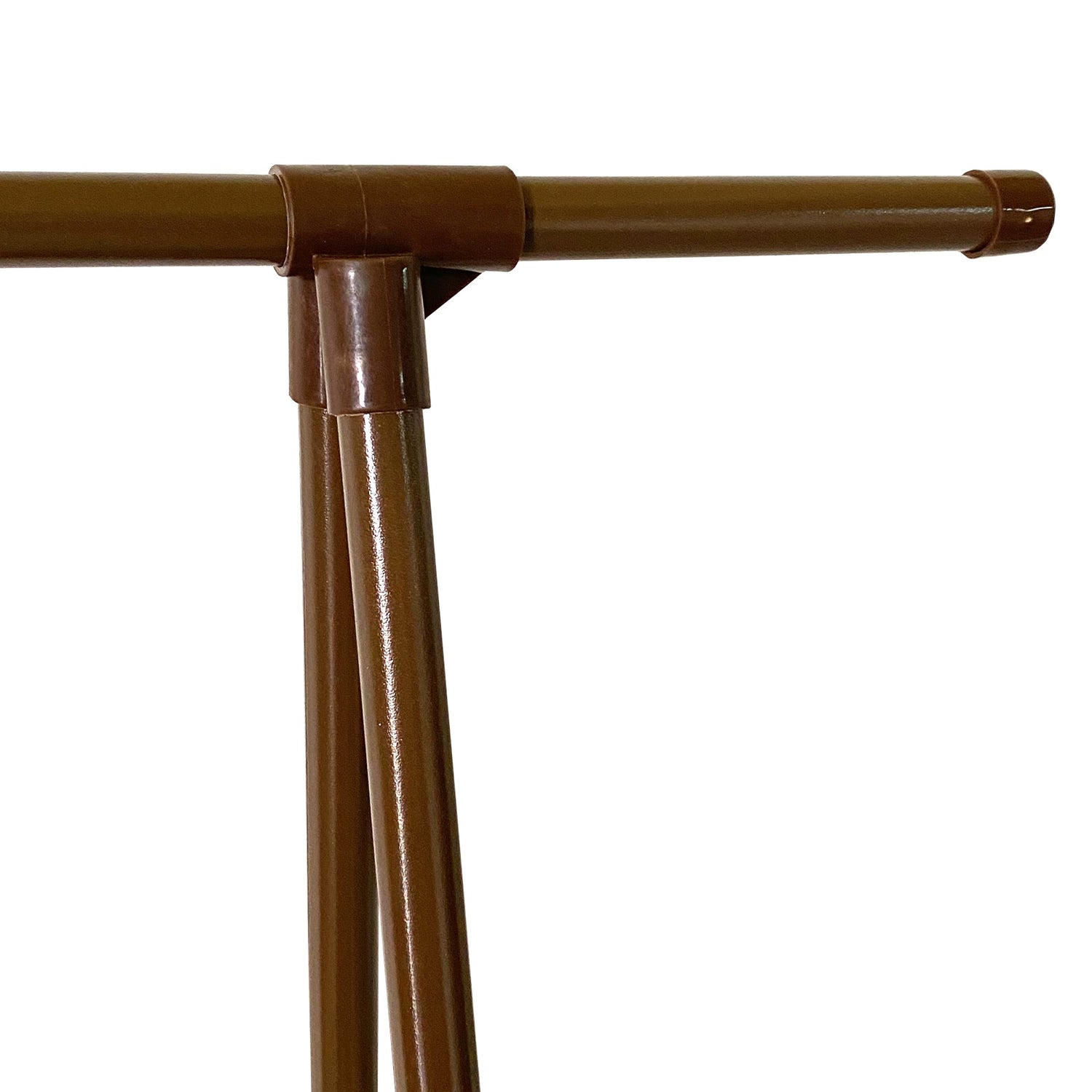 Fabricado con tubos de acero lacados en color, conectores de polipropileno y tela no tejida, este perchero combina estabilidad, resistencia y ligereza en un diseño elegante.