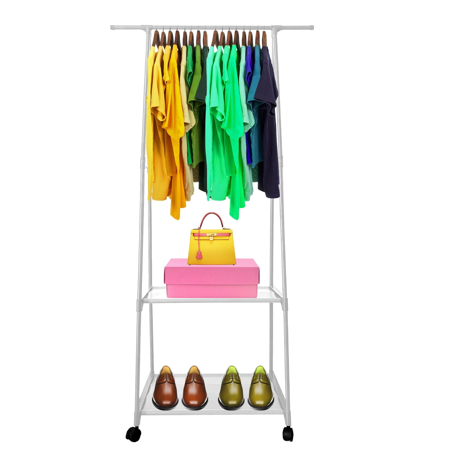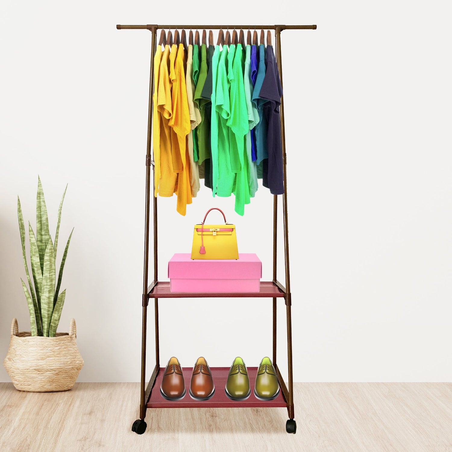 Organiza tu ropa de forma práctica y con estilo con el Perchero Burro con Ruedas. ¡No pierdas más tiempo buscando tus prendas favoritas y dale un toque de orden a tu hogar!