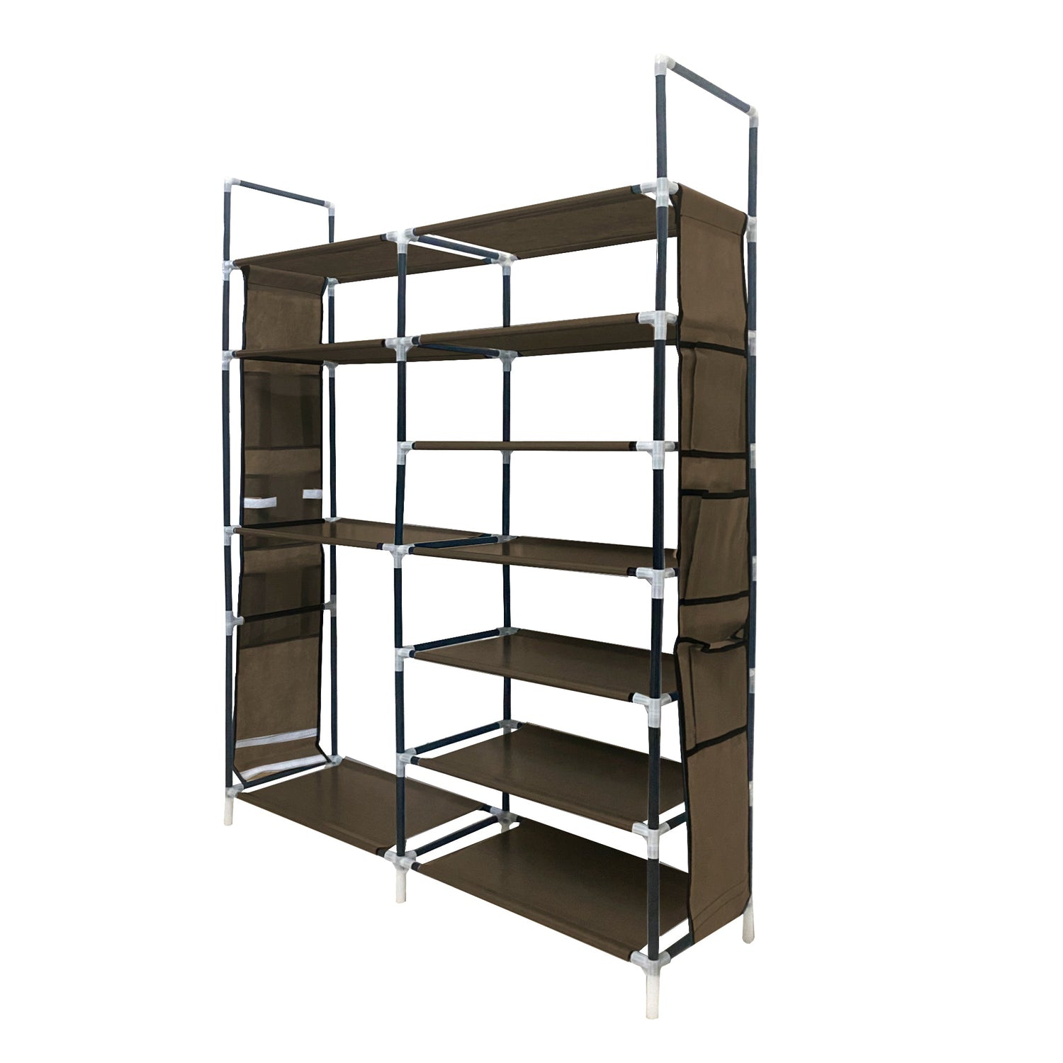 Este zapatero estructural alberga hasta 32 pares de calzado con una construcción de acero inox reforzado y conectores PP que permiten montaje rápido sin herramientas especializadas.