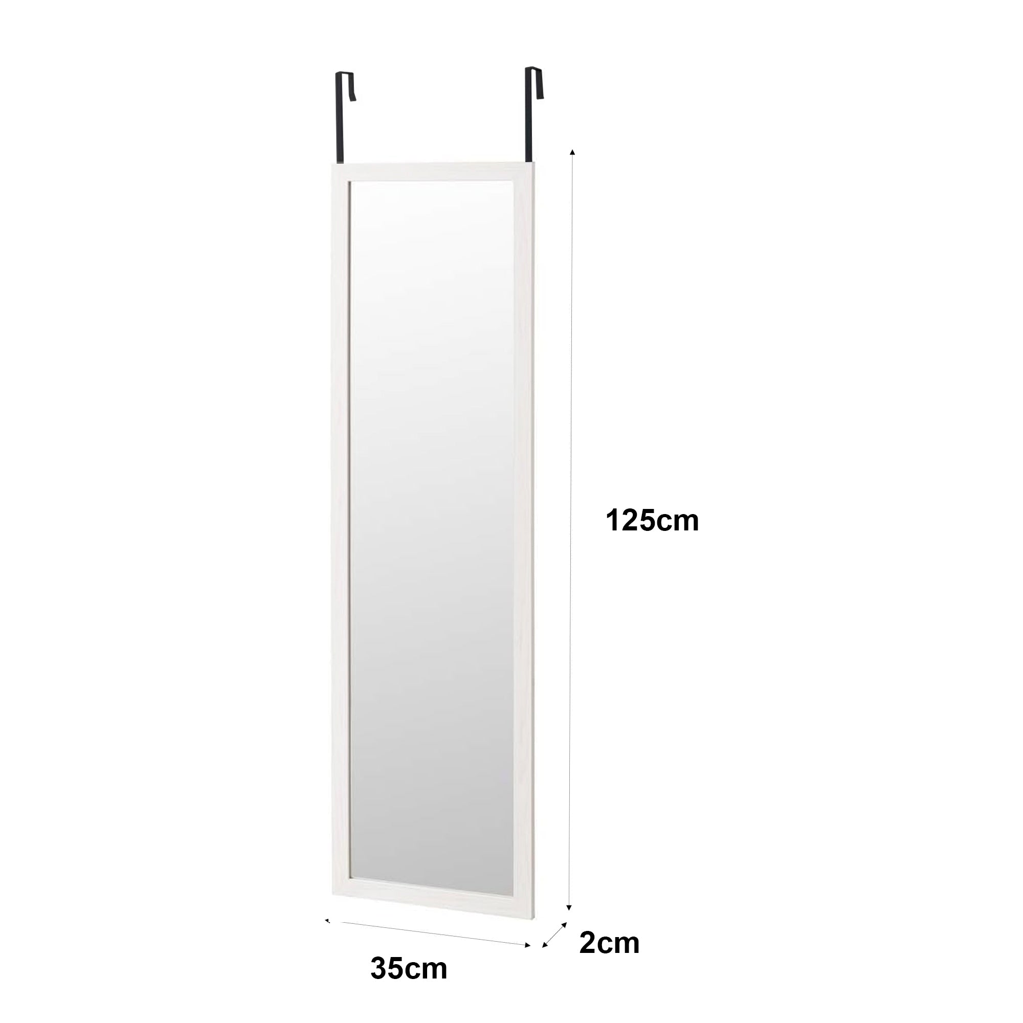 💡 Ideal para dormitorios, baños y oficinas. Su tamaño de 35x125 cm permite verse de cuerpo entero sin ocupar espacio en el suelo. Gracias a su ligereza y a su espejo de vidrio fino de 2 mm, es perfecto para colgar en puertas sin añadir peso excesivo.